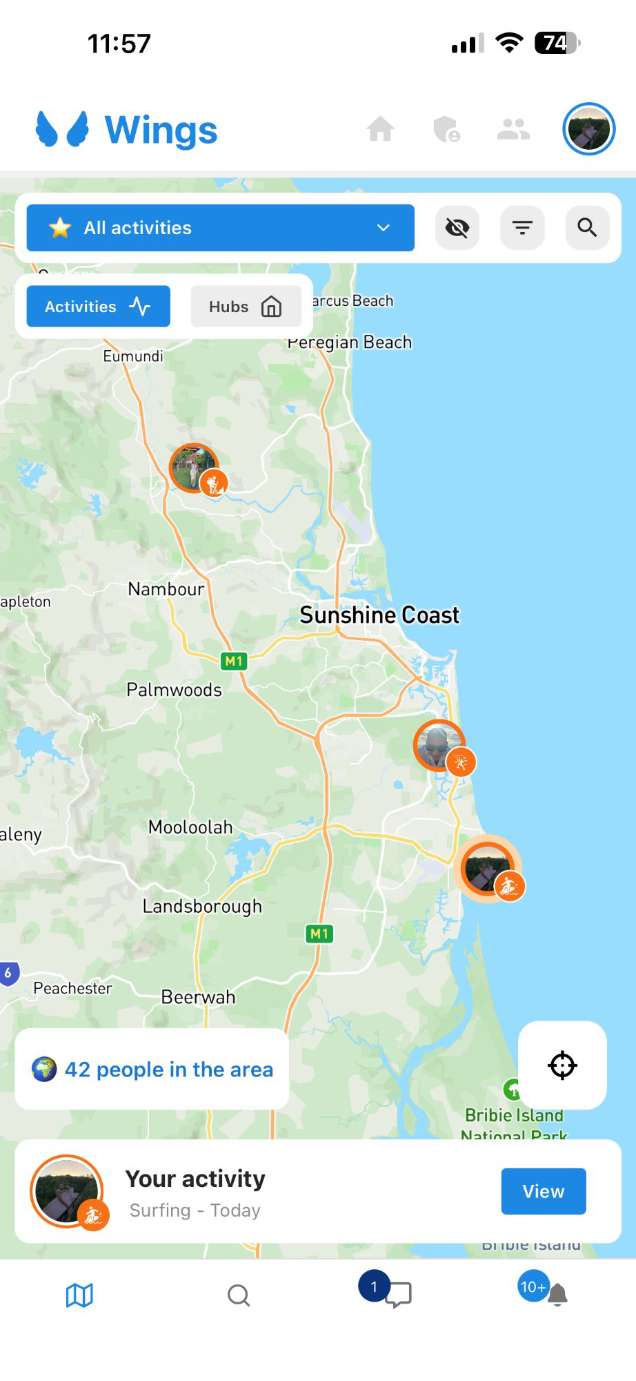 wings connects you with real people nearby doing real activities — surfing, hiking, swimming, climbing. No swiping. Just show up.